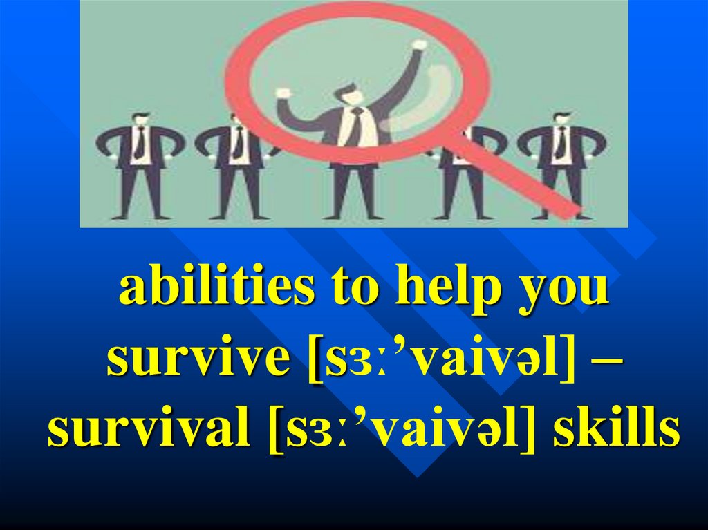 Survival [sɜː’vaivəl] skills– навыки выживания