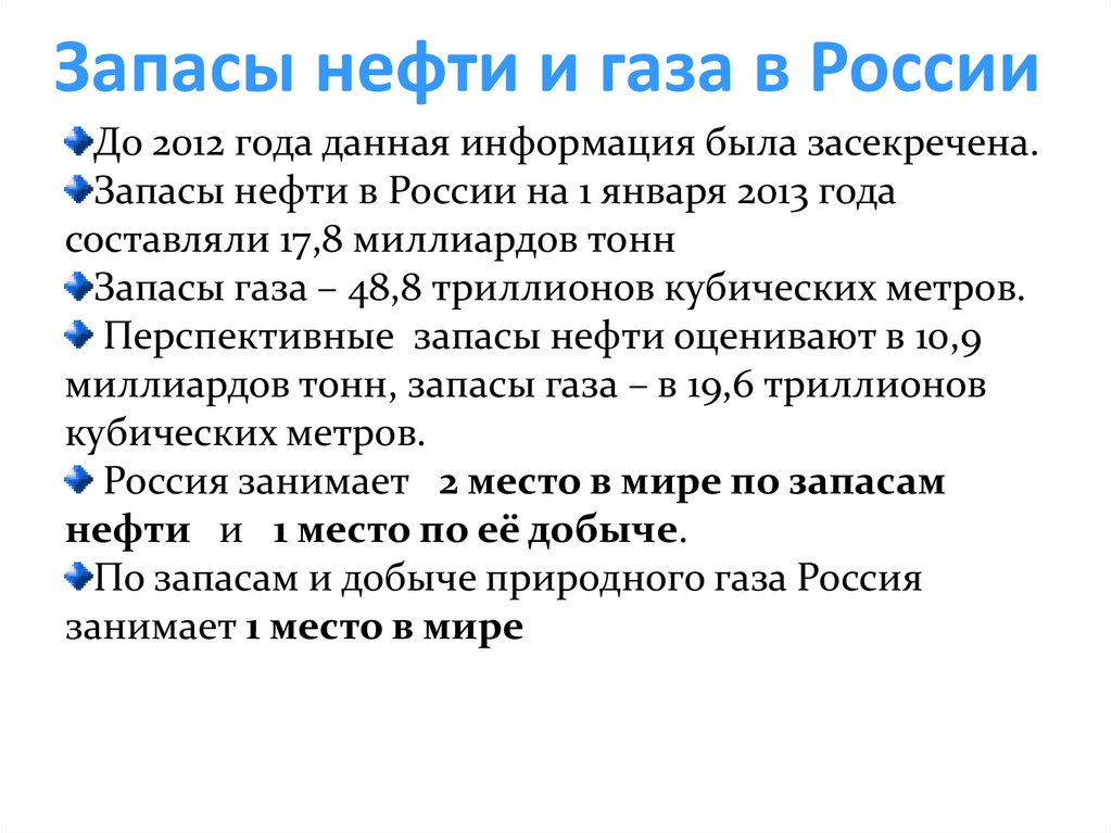 Запасы нефти и газа в РоссииДо 2012 года данная информация была засекречена.