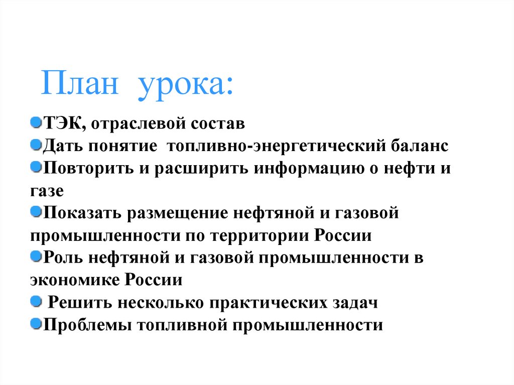 Топливно - энергетический комплекс.Нефтяная и газовая промышленности России.