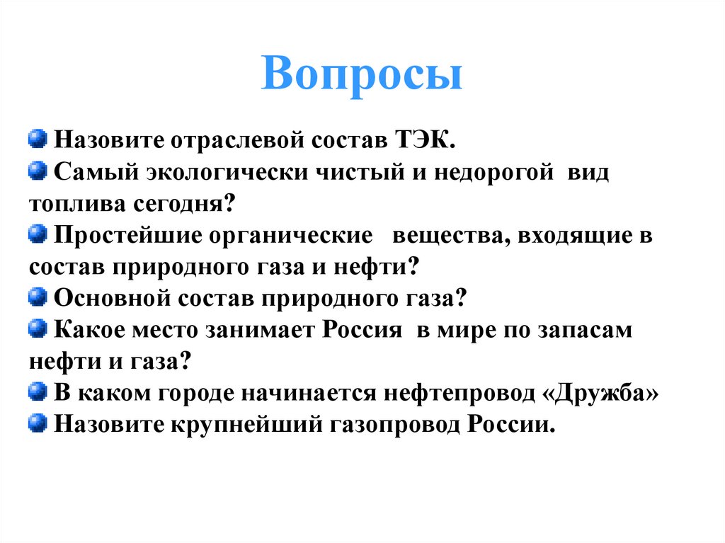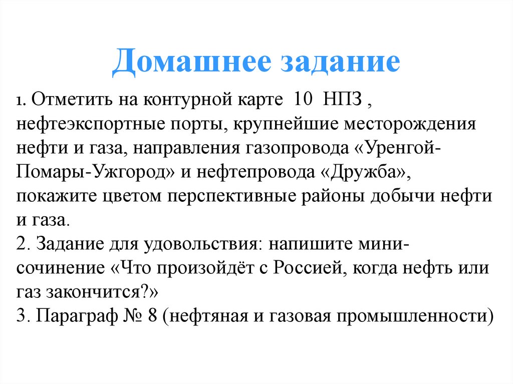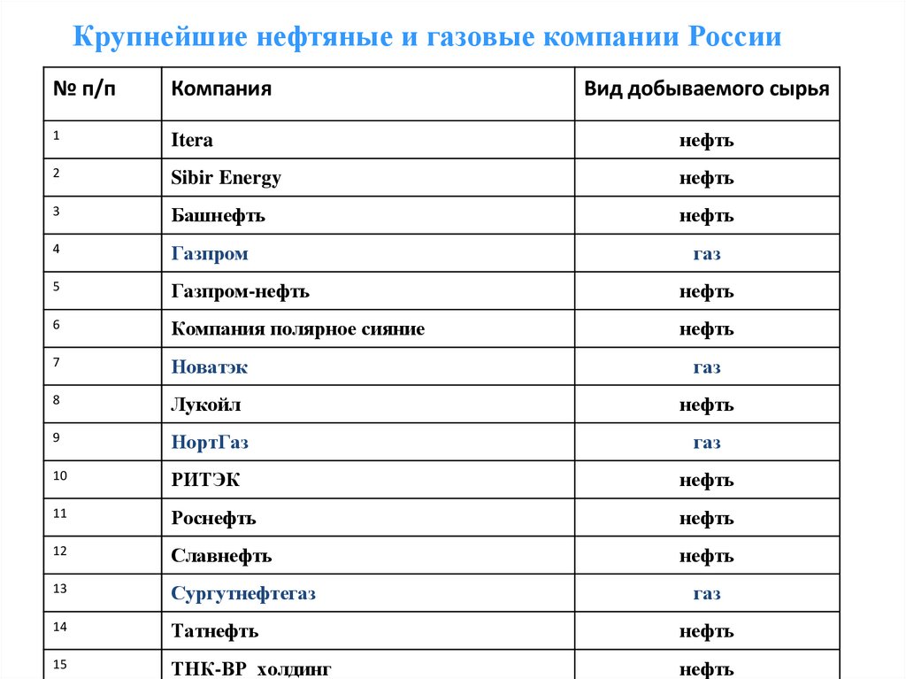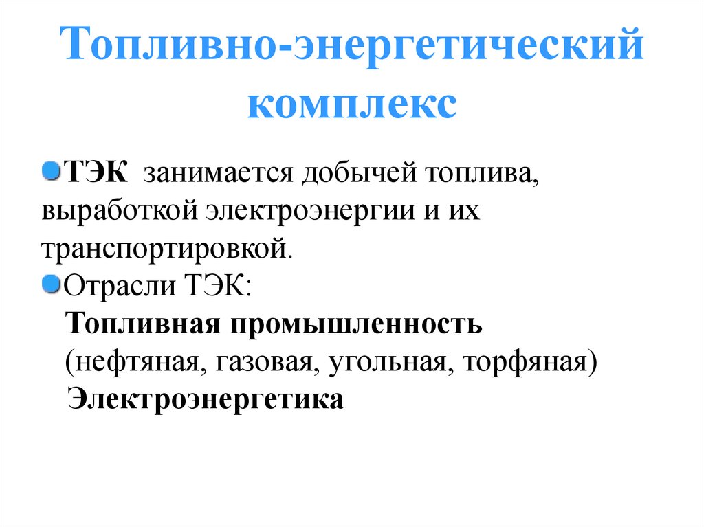 Топливно-энергетический комплекс. Газовая и нефтяная промышленность России