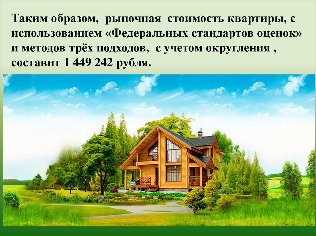 Таким образом, рыночная стоимость квартиры, сиспользованием «Федеральных стандартов оценок»