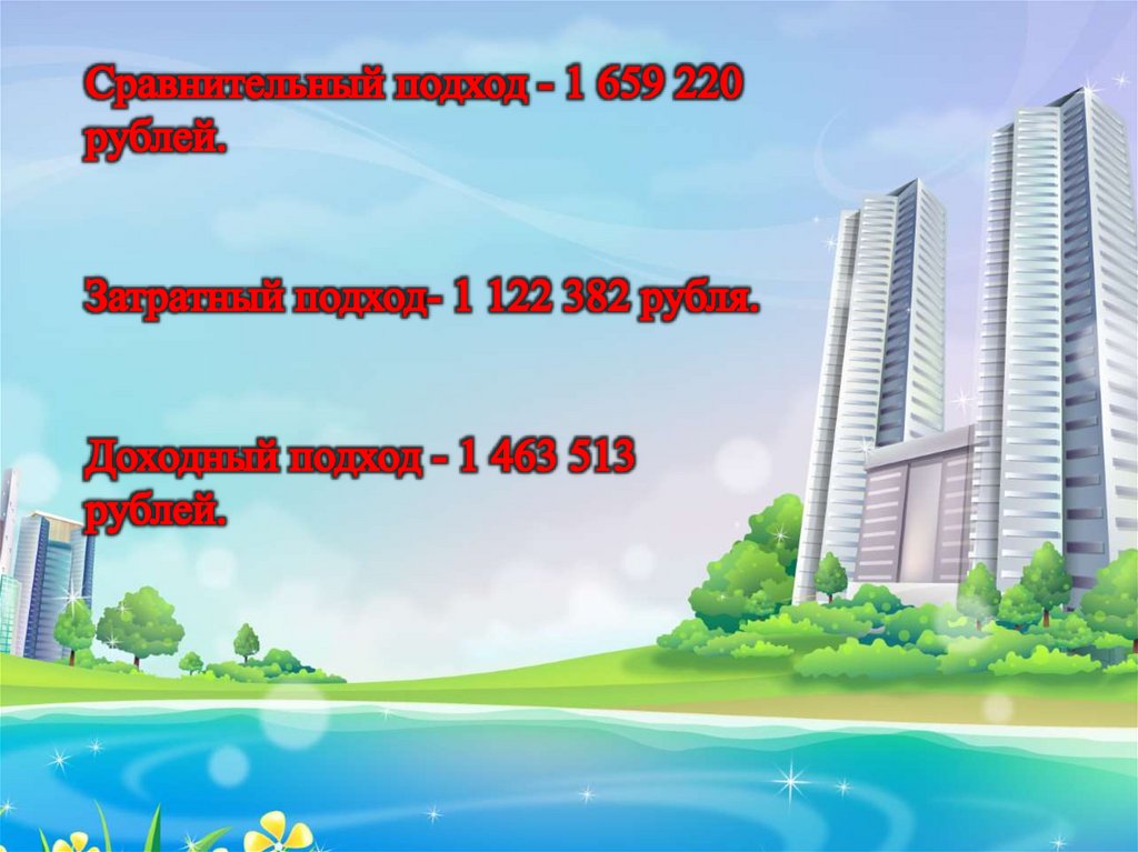 Рыночная стоимость объекта 336 714,6 + 746 649 + 365 878,25=