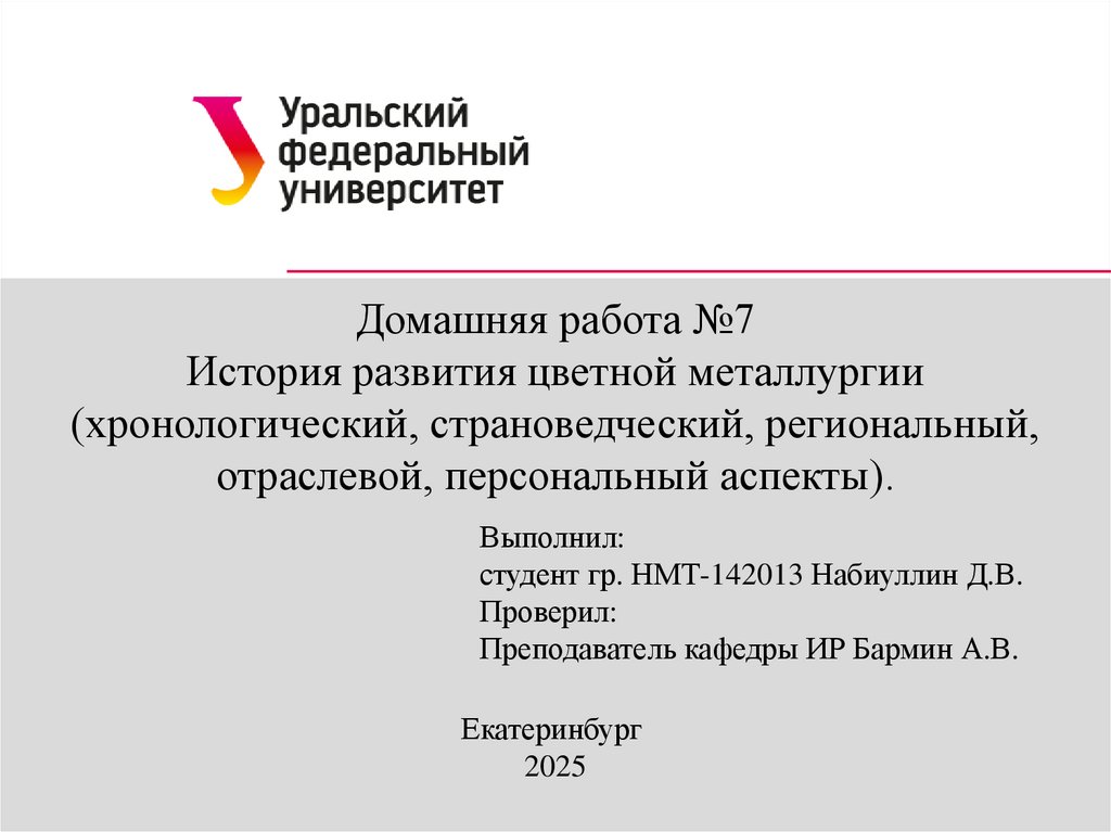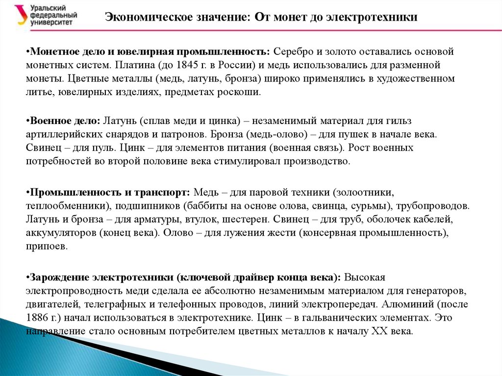 Цель работы: Комплексное исследование истории развития цветной металлургии с учетом