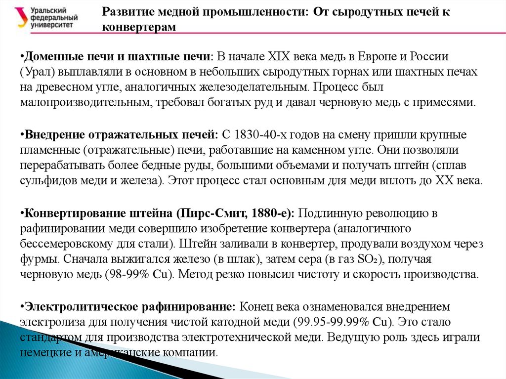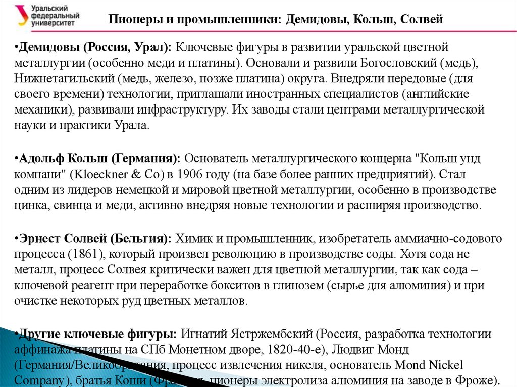 •Ключевые технологические прорывы: Электролиз алюминия (Холл-Эру) и меди, конвертирование