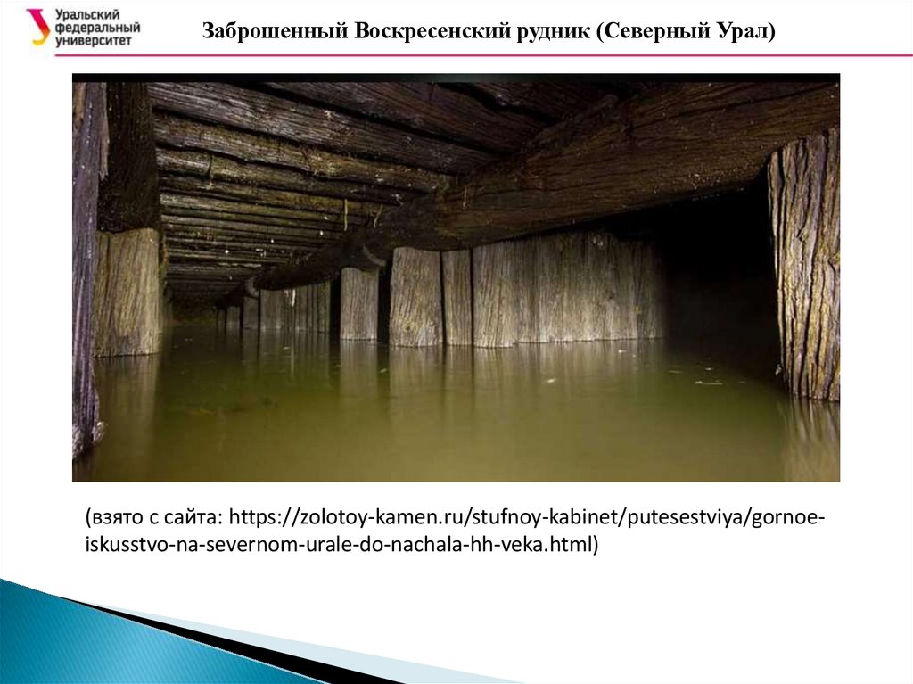 Заброшенный Воскресенский рудник (Северный Урал)(взято с сайта: https://zolotoy-kamen.ru/stufnoy-kabinet/putesestviya/gornoeiskusstvo-na-severnom-urale-do-nachala-hh-veka.html)