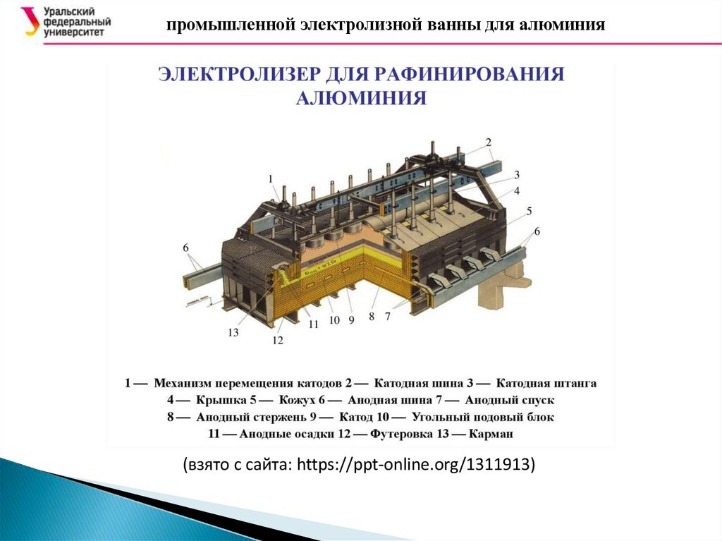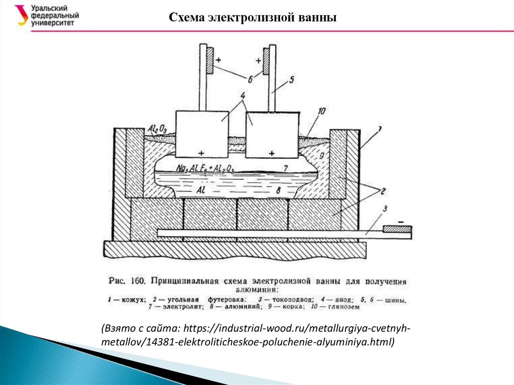 промышленной электролизной ванны для алюминия(взято с сайта: https://ppt-online.org/1311913)