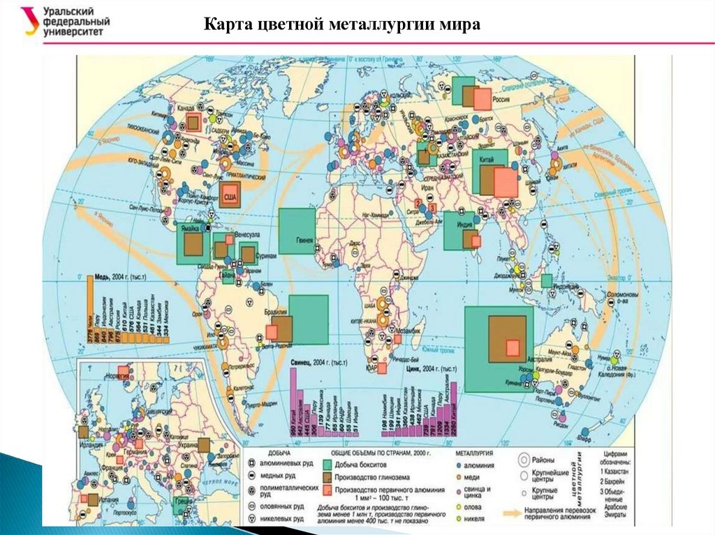 (Чили, Австралия, Африка) с металлургическими центрами (Уэльс, Рур, США). Цветные металлы стали
