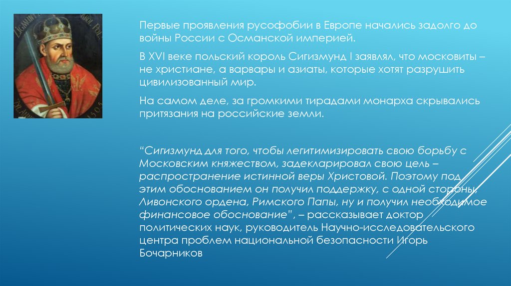 Корни русофобии уходят в глубокое прошлое - в XVI век, когда Россия начала