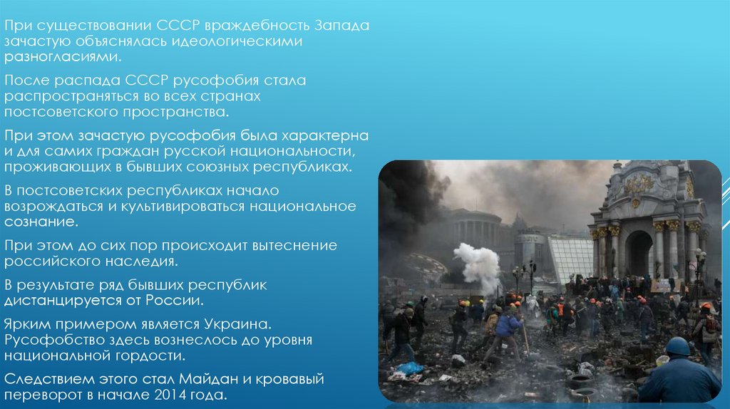 При существовании СССР враждебность Западазачастую объяснялась идеологическими