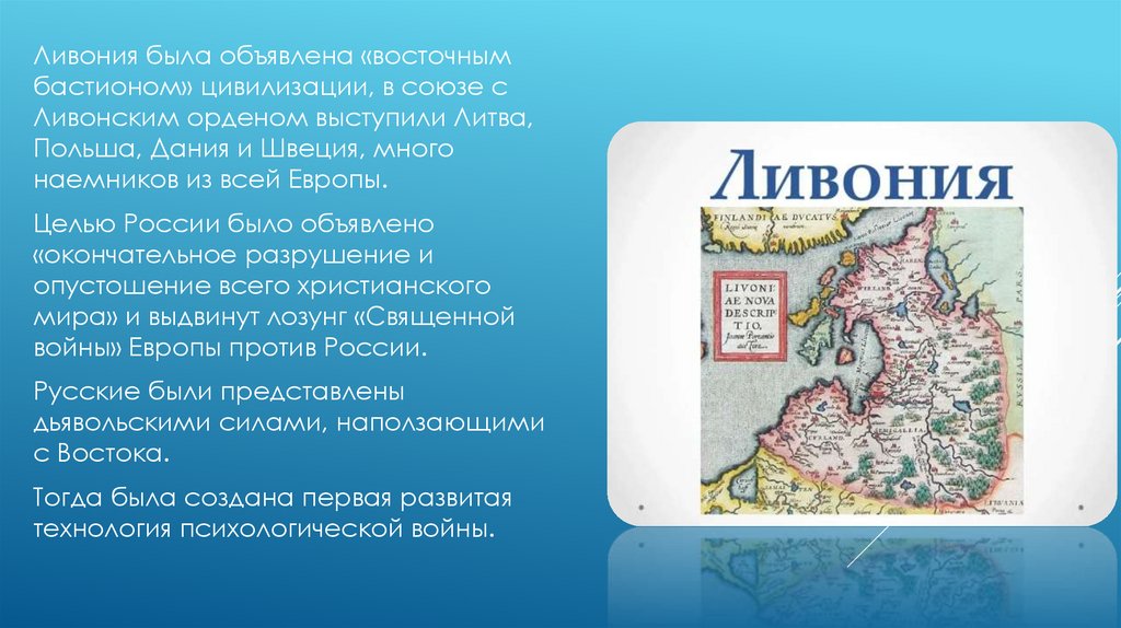 Ливония была объявлена «восточнымбастионом» цивилизации, в союзе с