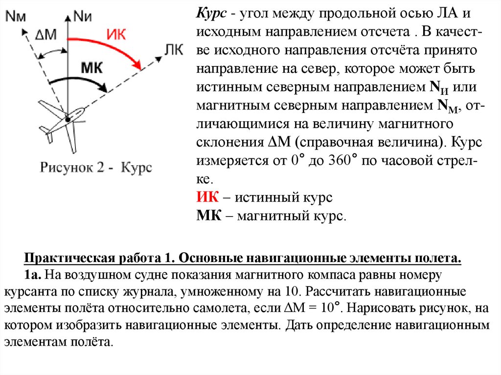 Курс - угол между продольной осью ЛА иисходным направлением отсчета . В качестве исходного направления отсчёта принято