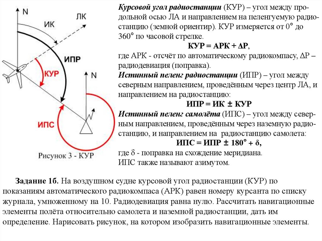 Задание 1б. На воздушном судне курсовой угол радиостанции (КУР) по