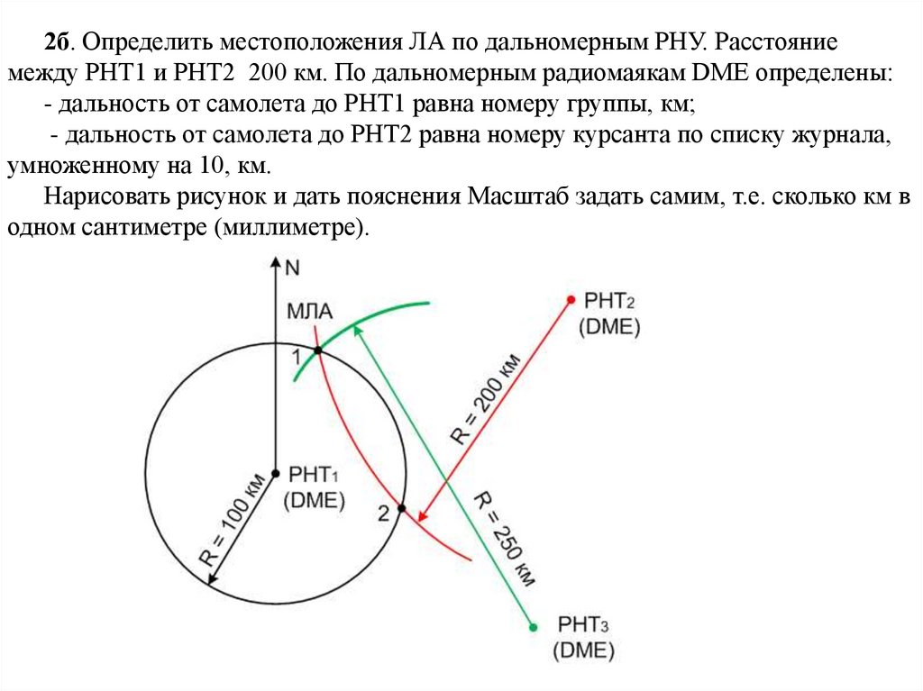 - дальность от самолета до РНТ2 равна номеру курсанта по списку журнала,
