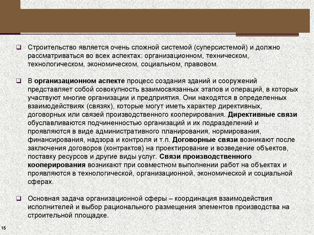 в системах управления строительством, обеспечивающих наиболее рациональное