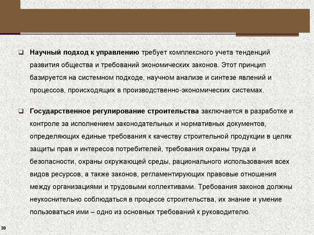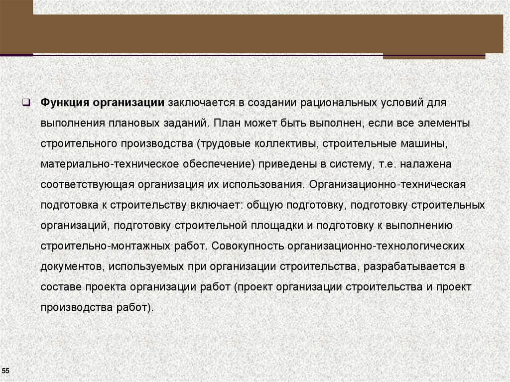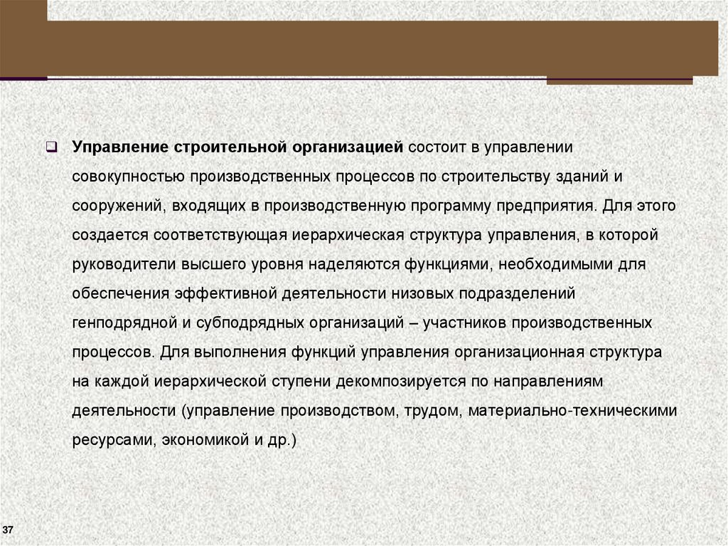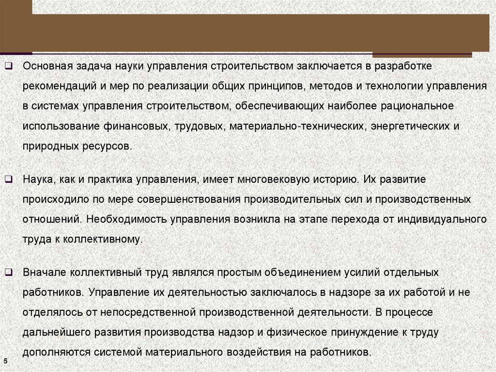 Основная задача науки управления строительством заключается в разработкерекомендаций и мер по реализации общих принципов, методов и технологии управления