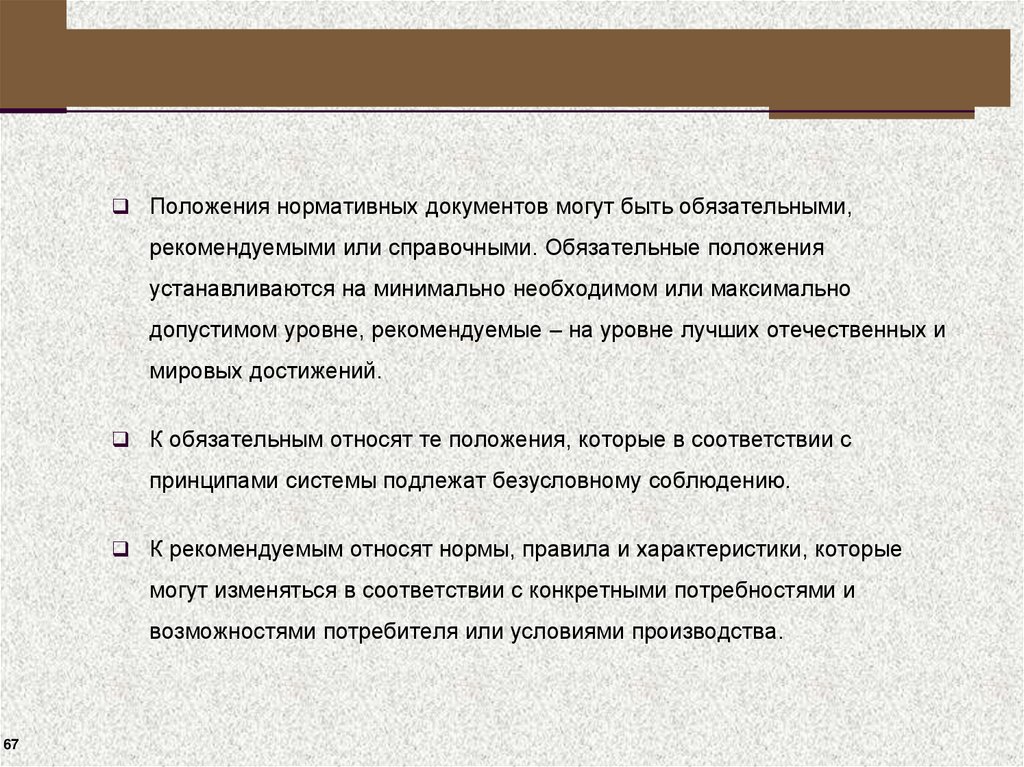 Положения нормативных документов могут быть обязательными,рекомендуемыми или справочными. Обязательные положения