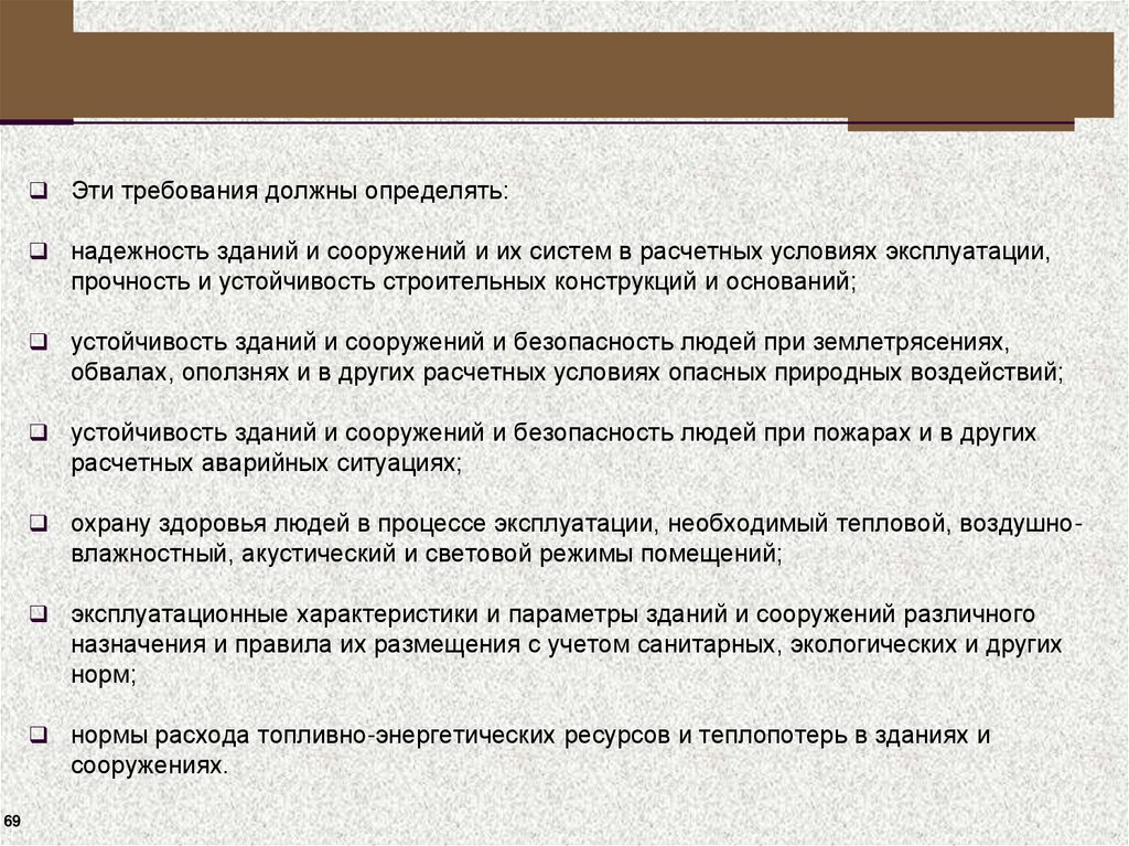 Эти требования должны определять:надежность зданий и сооружений и их систем в расчетных условиях эксплуатации,
