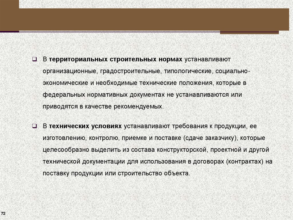 В территориальных строительных нормах устанавливаюторганизационные, градостроительные, типологические, социальноэкономические и необходимые технические положения, которые в