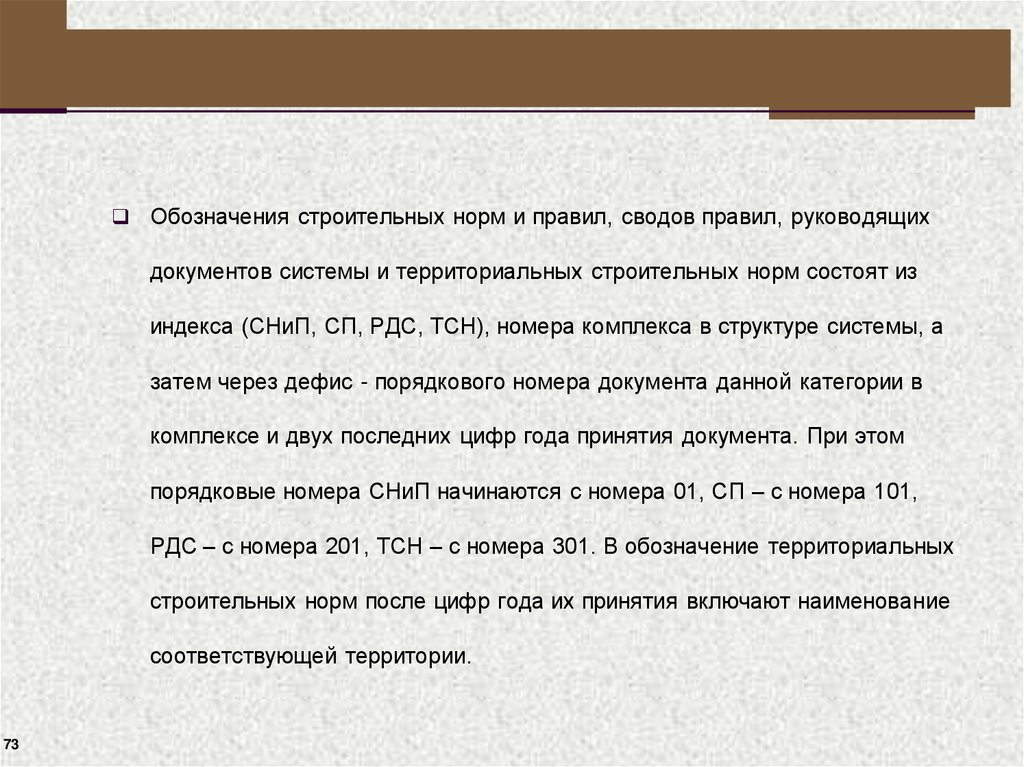 индекса (СНиП, СП, РДС, ТСН), номера комплекса в структуре системы, а