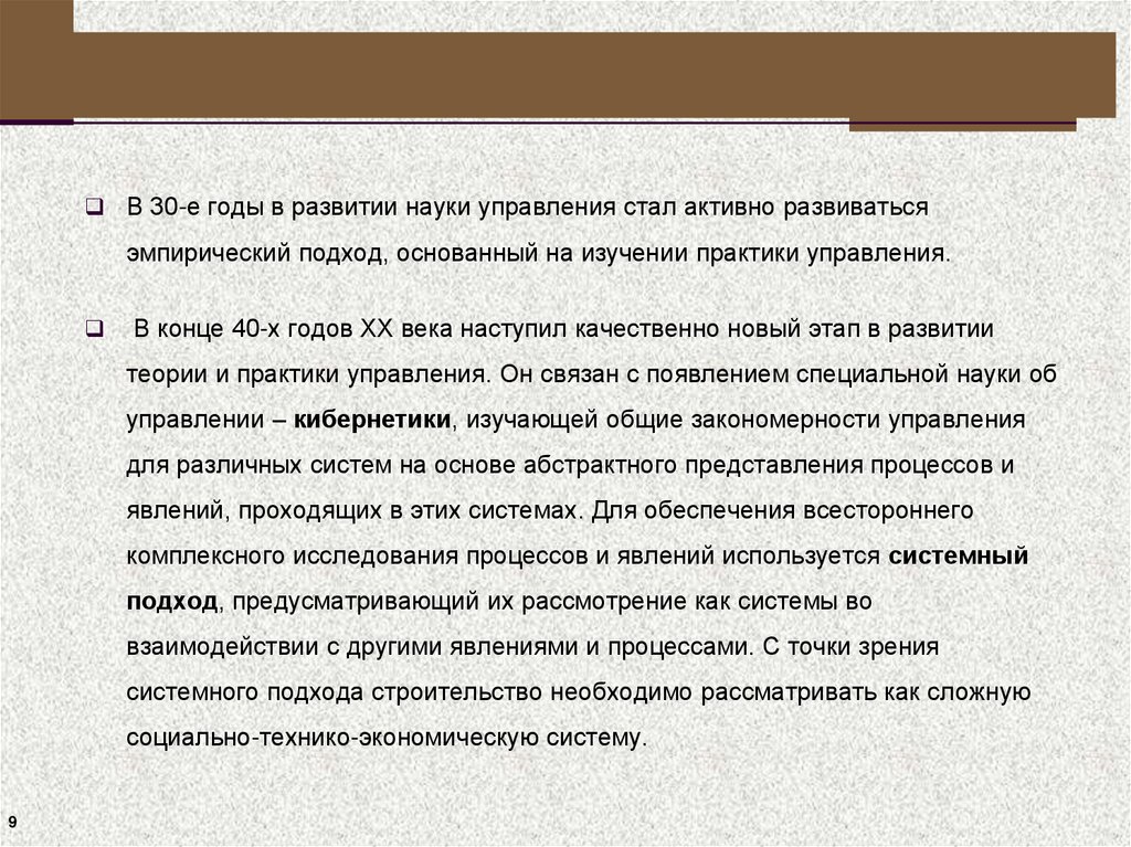 В 30-е годы в развитии науки управления стал активно развиватьсяэмпирический подход, основанный на изучении практики управления.
