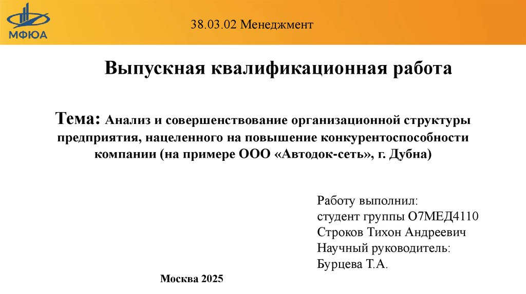 Анализ и совершенствование организационной структуры предприятия, нацеленного на повышение конкурентоспособности компании