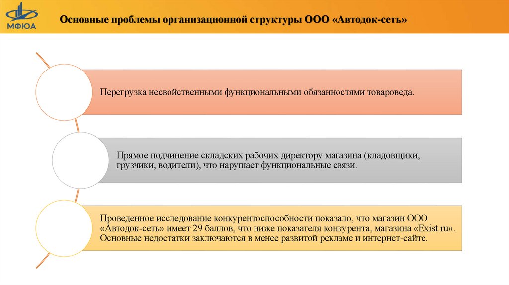 Основные проблемы организационной структуры ООО «Автодок-сеть»Перегрузка несвойственными функциональными обязанностями товароведа.