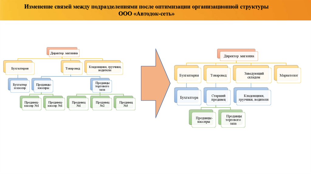 Изменение связей между подразделениями после оптимизации организационной структурыООО «Автодок-сеть»
