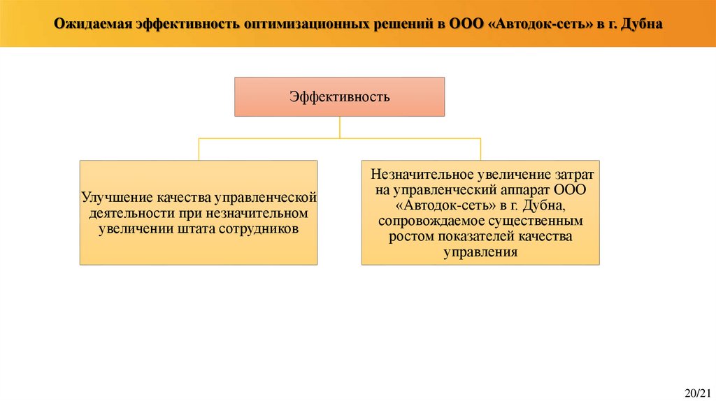 Ожидаемая эффективность оптимизационных решений в ООО «Автодок-сеть» в г. ДубнаЭффективность