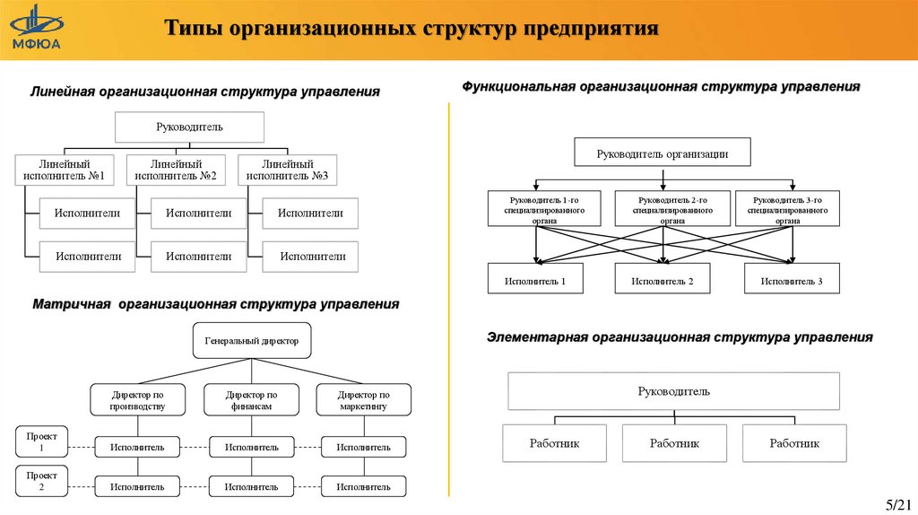 Типы организационных структур предприятияЛинейная организационная структура управления