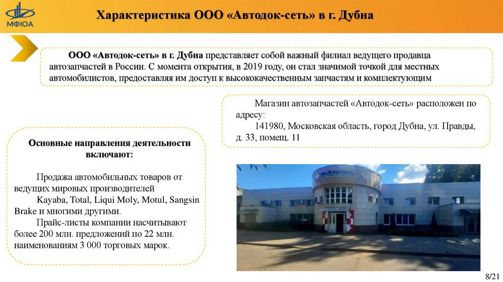 «Автодок-сеть» и непосредственно филиал в г. Дубна,
