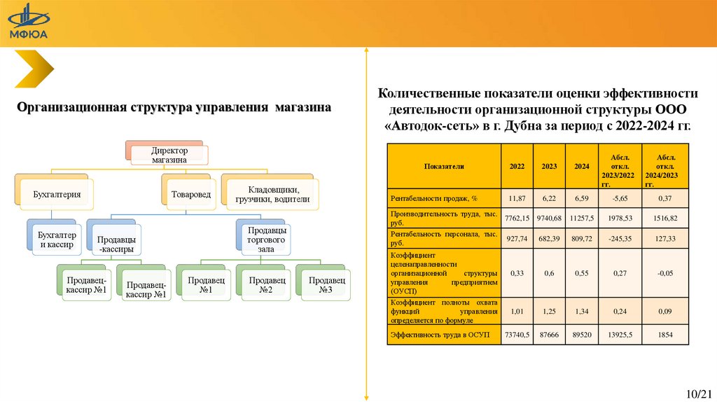 организационной структуры ООО «Автодок-сеть» филиал в г. Дубна,