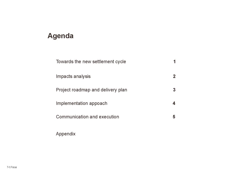 AgendaTowards the new settlement cycle