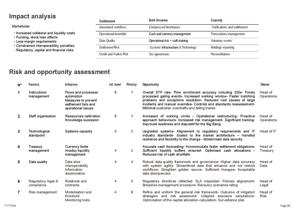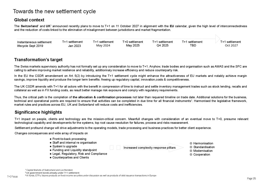 T+1 impact on people, clients and technology are the mission-critical concern. Meanfull changes with consideration of an eventual move to T+0, presume relevant