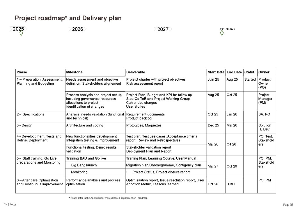 Project roadmap and delivery plan