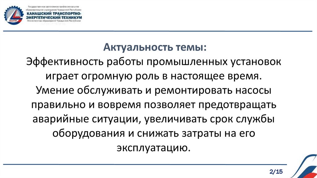 Актуальность темы:Эффективность работы промышленных установок