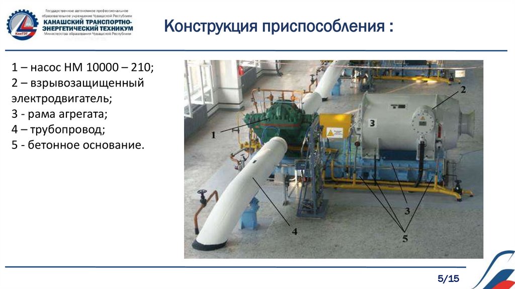 Конструкция приспособления :1 – насос НМ 10000 – 210;