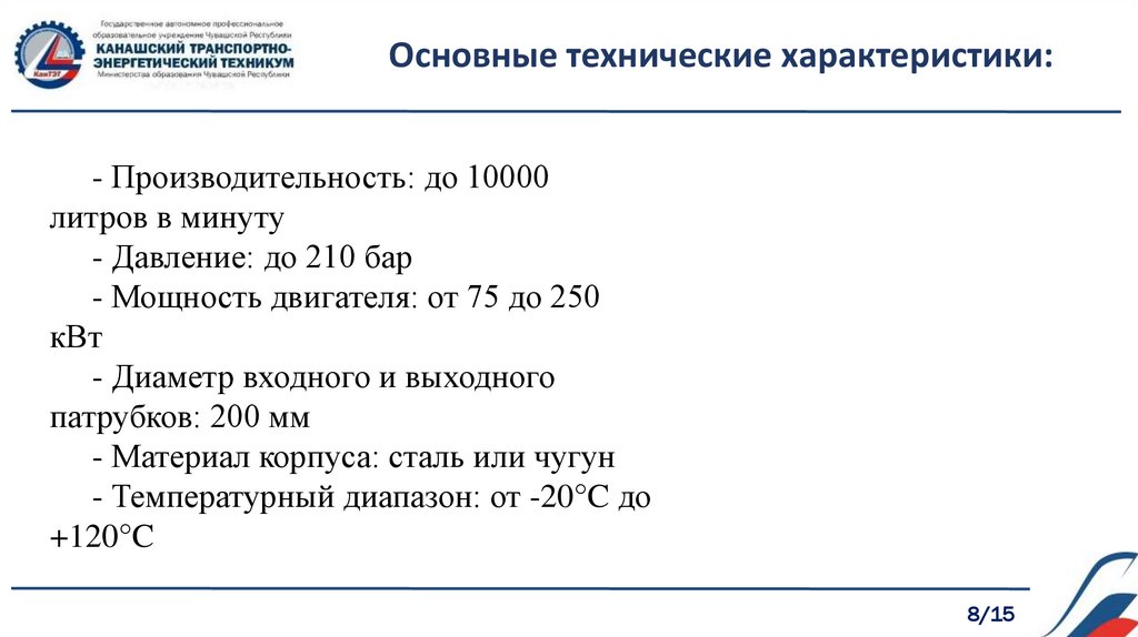 Основные технические характеристики:- Производительность: до 10000