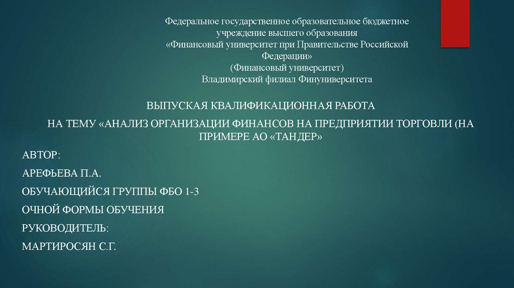 1. Федеральное государственное образовательное бюджетное учреждение высшего образования «Финансовый университет при Правительстве