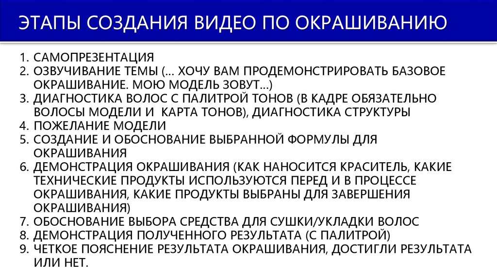ЭТАПЫ СОЗДАНИЯ ВИДЕО ПО ОКРАШИВАНИЮ1. САМОПРЕЗЕНТАЦИЯ