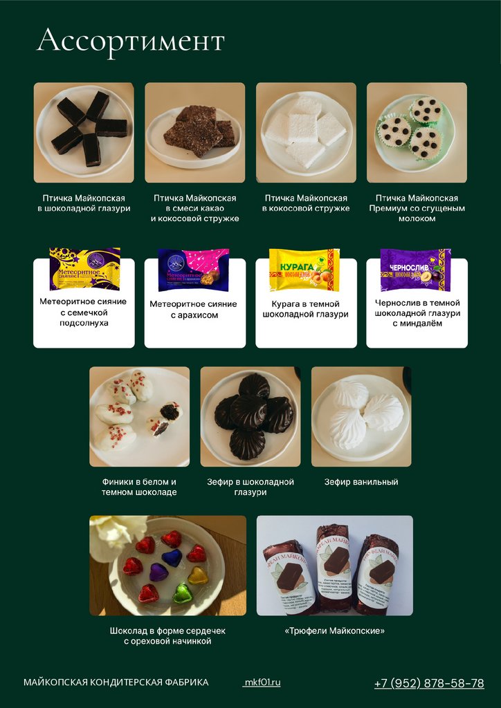 АссортиментМАЙКОПСКАЯ КОНДИТЕРСКАЯ ФАБРИКА