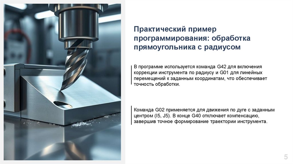центром (I5, J5). В конце G40 отключает компенсацию,
