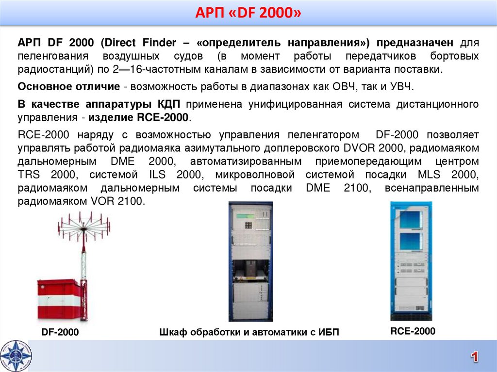 АРП DF 2000 (Direct Finder – «определитель направления») предназначен дляпеленгования воздушных судов (в момент работы передатчиков бортовых