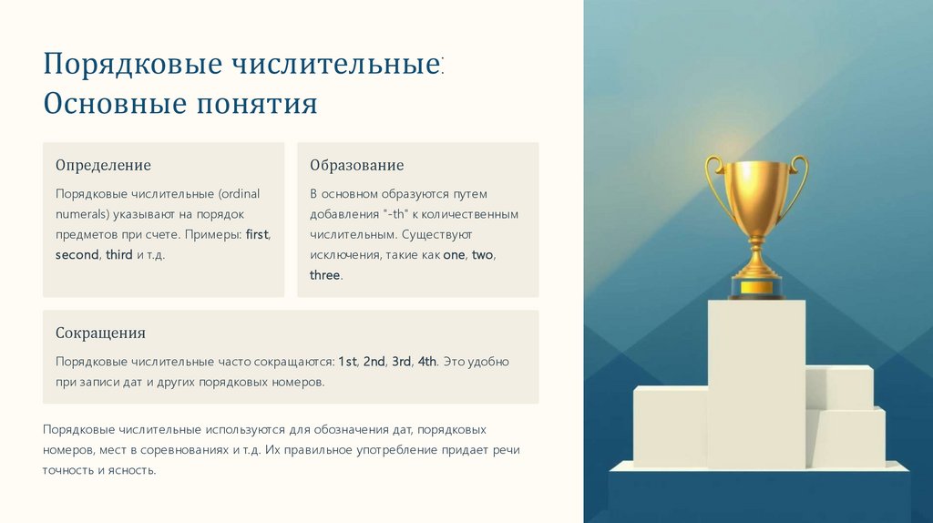 Порядковые числительные:Основные понятия