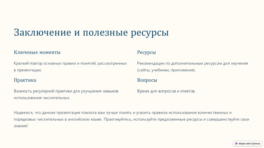 Надеемся, что данная презентация помогла вам лучше понять и усвоить правила использования количественных и
