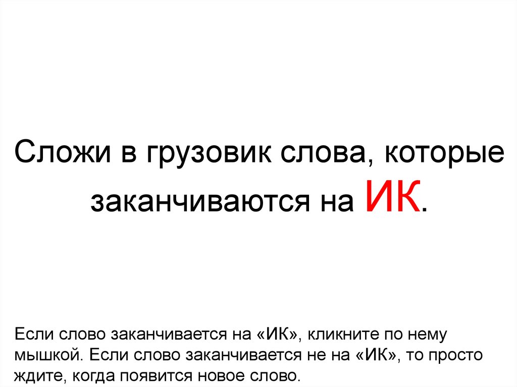 Сложи в грузовик слова, которыезаканчиваются на ИК.