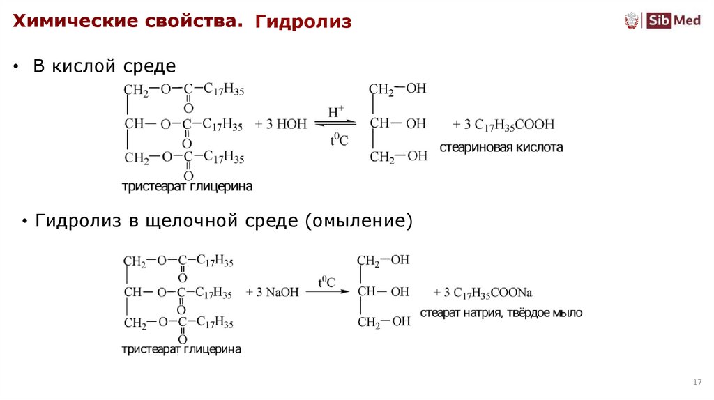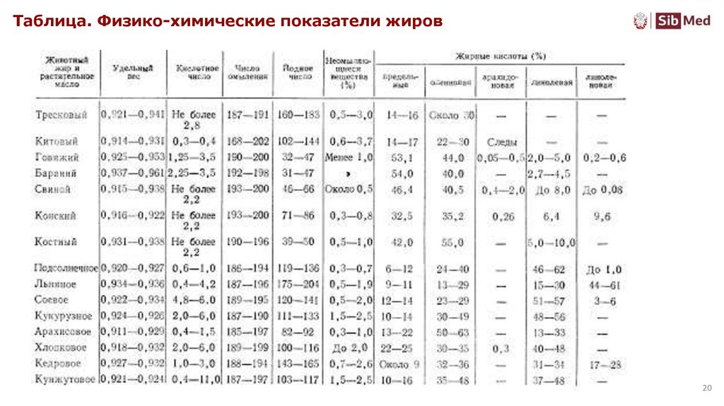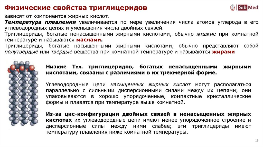 Физические свойства триглицеридовзависят от компонентов жирных кислот.