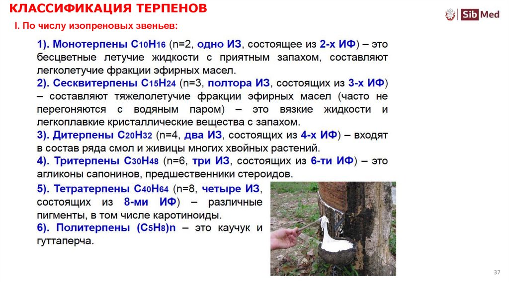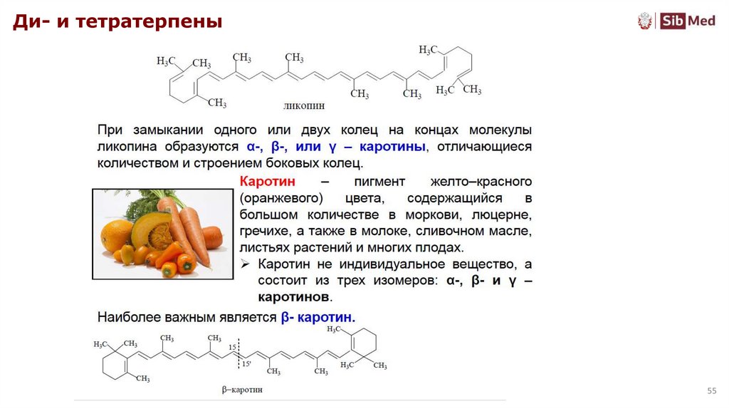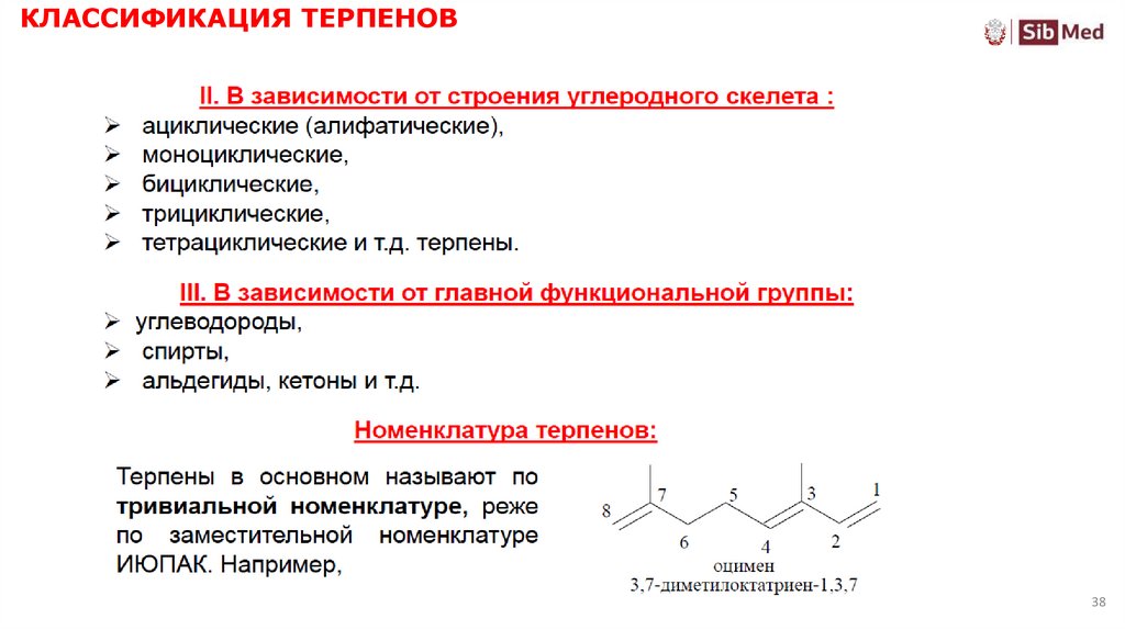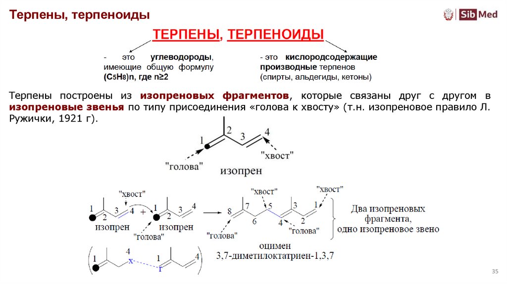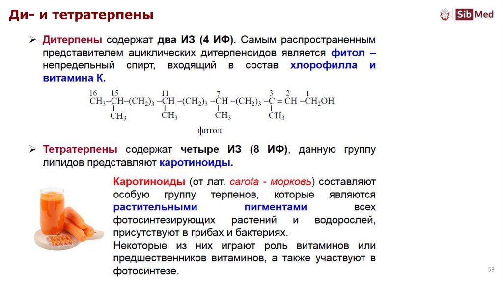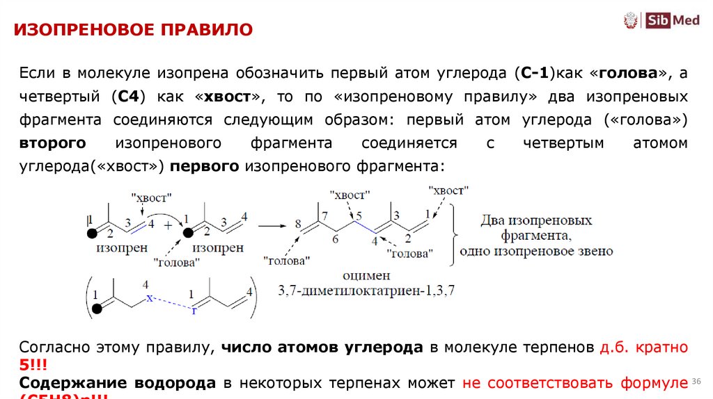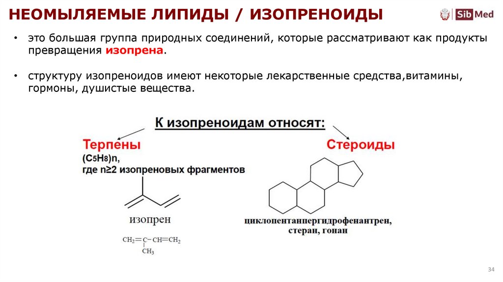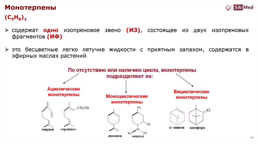 ⮚ содержат одно изопреновое звено (ИЗ), состоящее из двух изопреновых