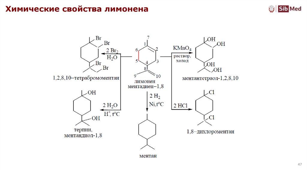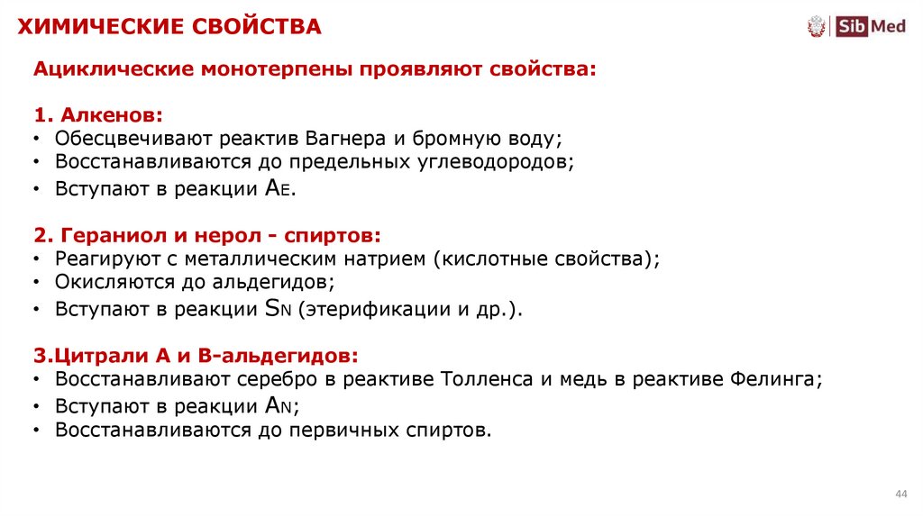 ХИМИЧЕСКИЕ СВОЙСТВААциклические монотерпены проявляют свойства: