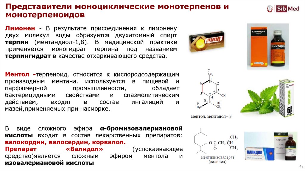 эвкалипта, душицы, тимьяна, а также в скипидарах.