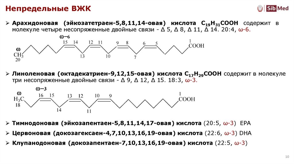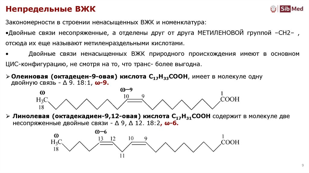 Непредельные ВЖКЗакономерности в строении ненасыщенных ВЖК и номенклатура: